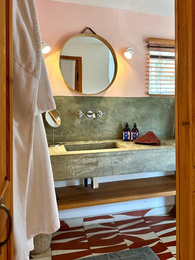 Elle se compose d'une chambre double avec cheminée et coin bureau ainsi qu'une deuxième chambre avec un lit double. Salle de bain avec douche à l'italienne en carreaux de ciment traditionnels.