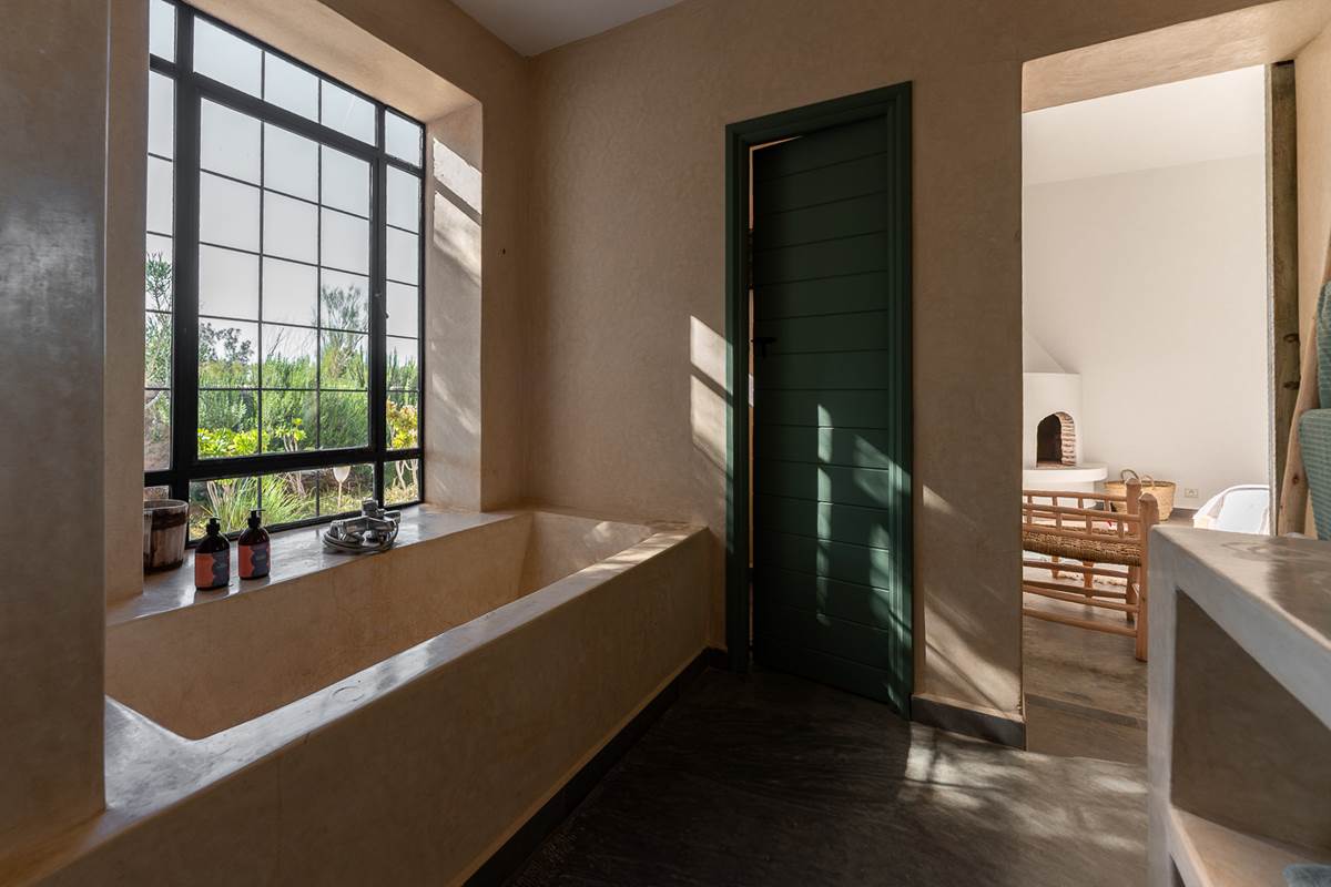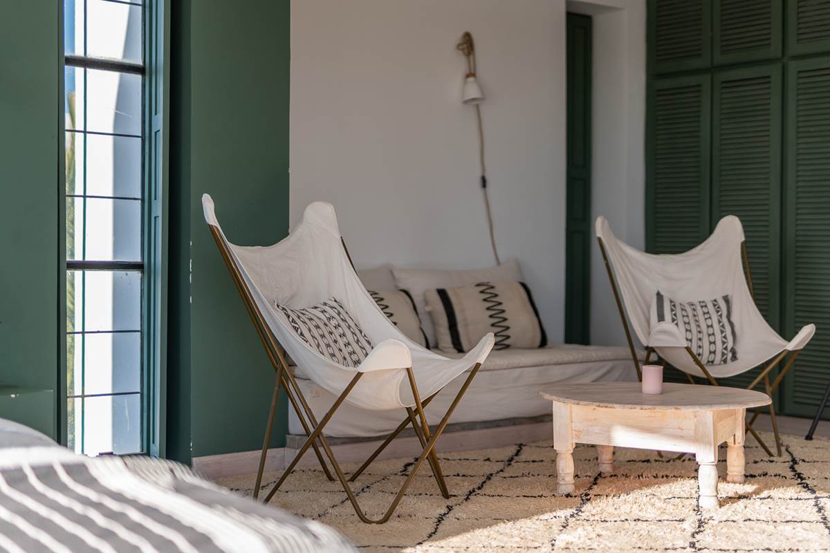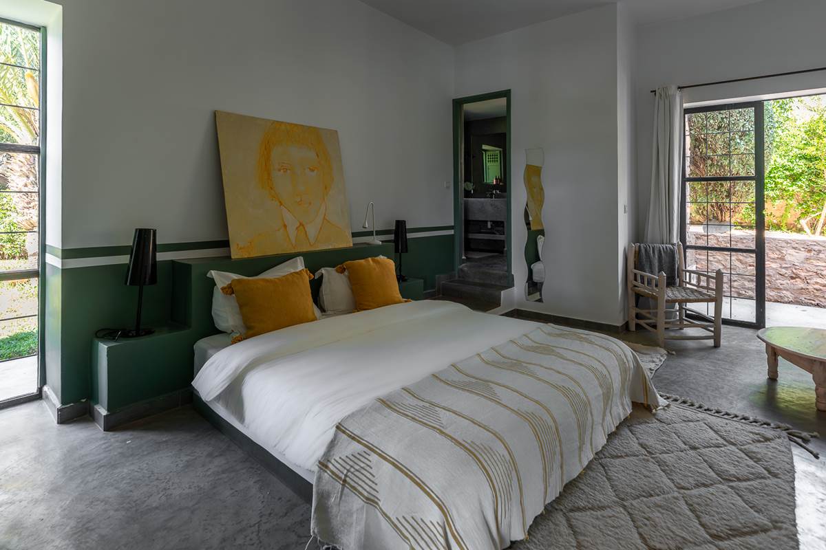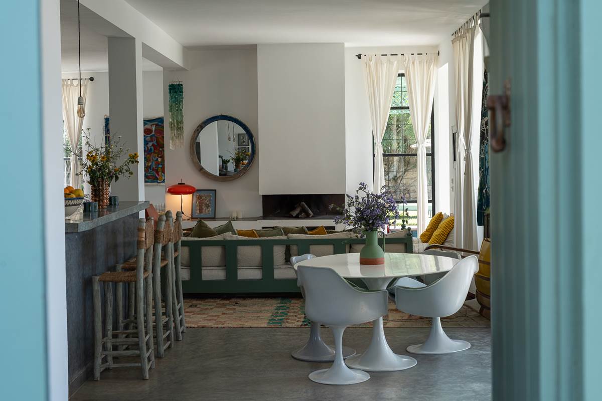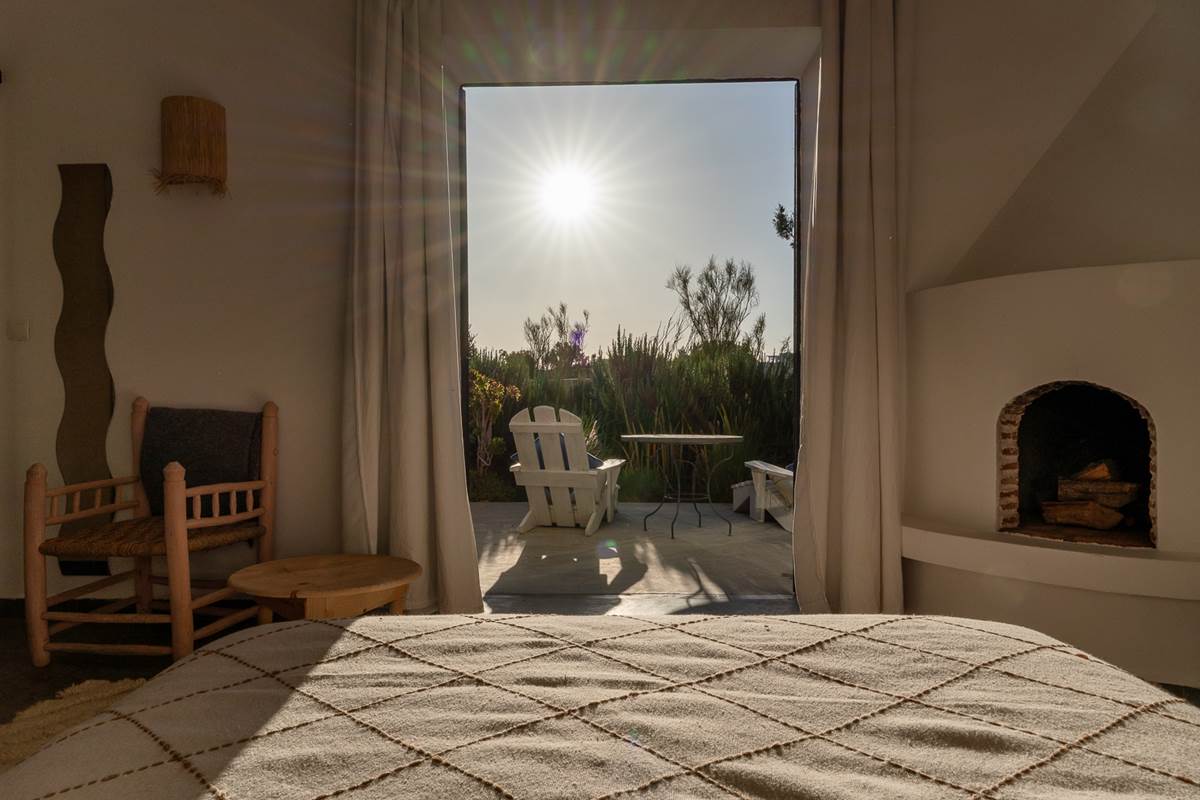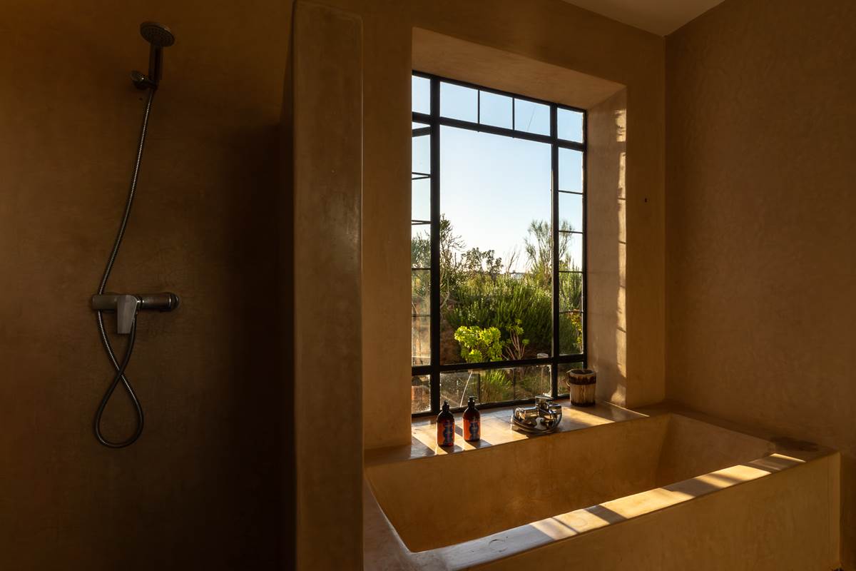 Nichée au cœur d'un vaste jardin arboré de 1 500 m², elle offre un cadre paisible au style unique mêlant mobilier vintage et artisanat marocain créant une atmosphère chaleureuse et authentique avec une vue dégagée sur la campagne et de magnifiques couchers de soleil.