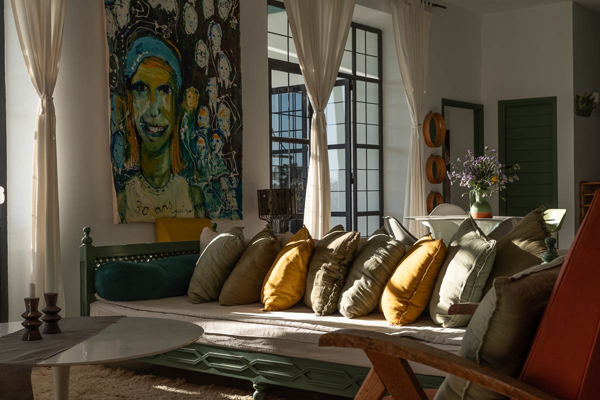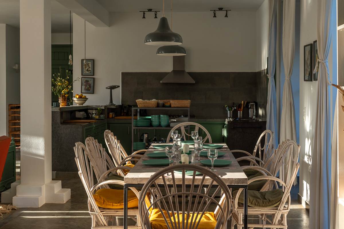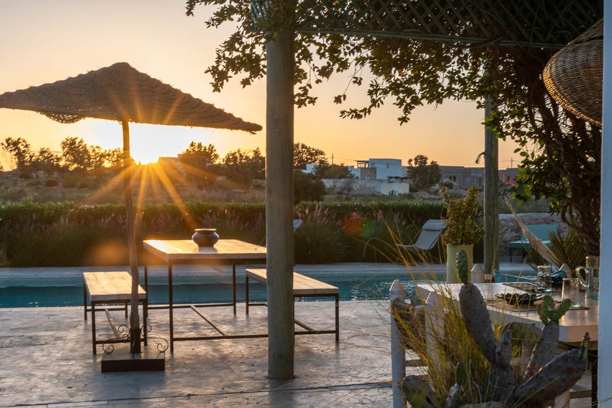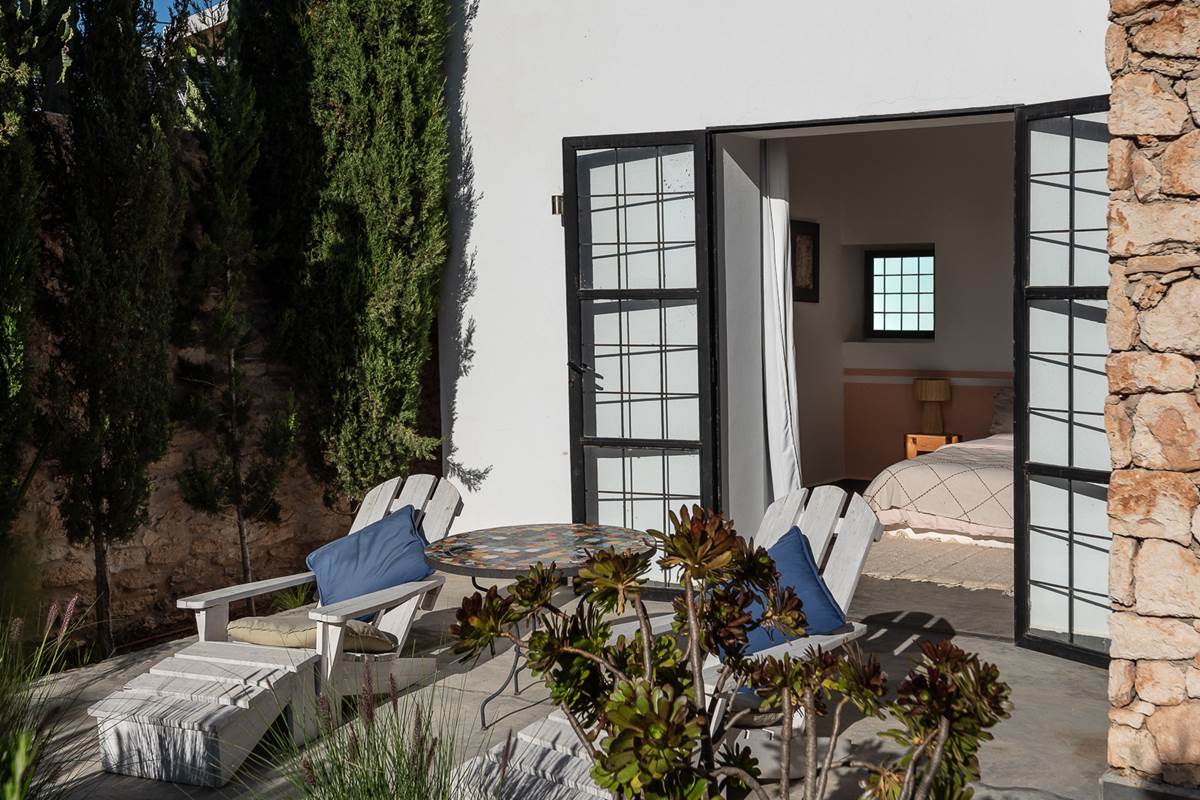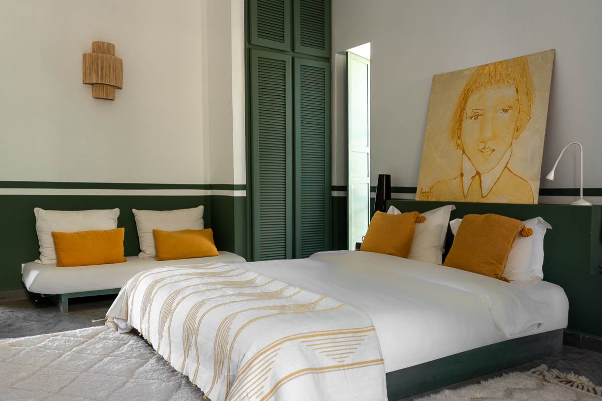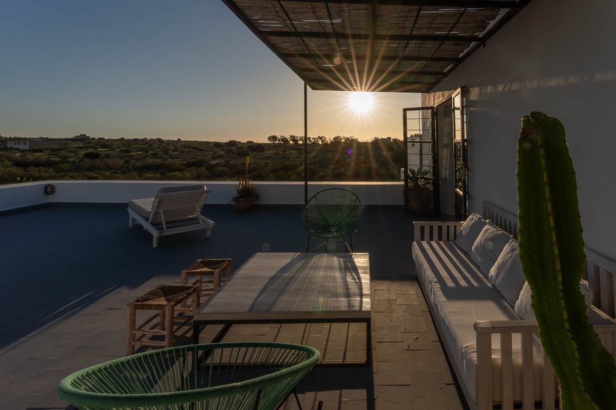 Nichée au cœur d'un vaste jardin arboré de 1 500 m², elle offre un cadre paisible au style unique mêlant mobilier vintage et artisanat marocain créant une atmosphère chaleureuse et authentique avec une vue dégagée sur la campagne et de magnifiques couchers de soleil.