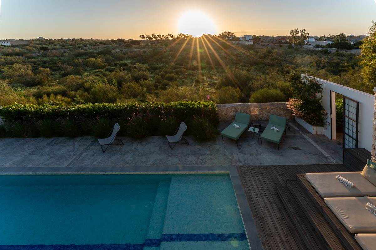 La villa Céleste dispose d'une piscine (12m x 3,5m) chauffée à l'année à 28°, protégée des vents dominants, et de plusieurs terrasses abritées également du vent, idéales pour se détendre. Elle dispose de 5 chambres spacieuses et confortables et de 4 salles de bain. 4 chambres en rez-de-chaussée avec terrasse privative et une 5eme chambre sur le toit terrasse, offrant un panorama exceptionnel sur la garrigue environnante.